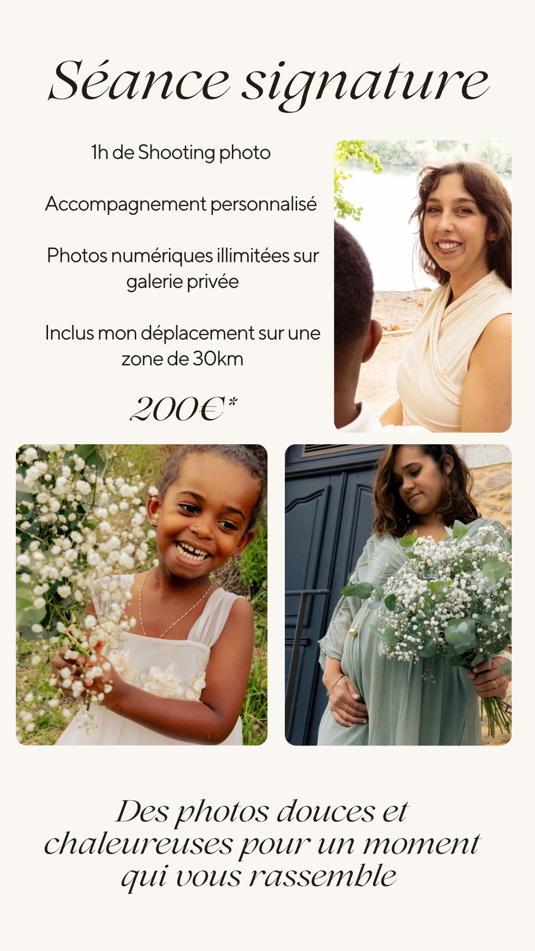*Les tarifs peuvent évoluer si il y a certaines demandes particulières de votre part comme la création d'un album, ou en fonction des frais de déplacement dûs à la distance avec le lieu de la prestation. N'hésitez pas à me contacter pour vos questions.